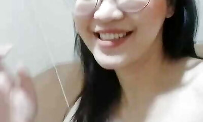 Palatable chunky brunette gonna take a shower and tickle her wet pussy
