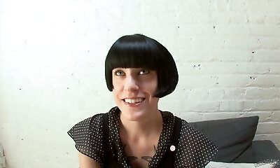 Utter of emotions short haired brunette emo chick gets bald labia fucked