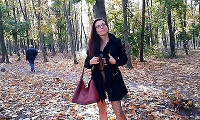 Ambling NO PANTIES in Pantyhose #PUBLIC Autumn Park