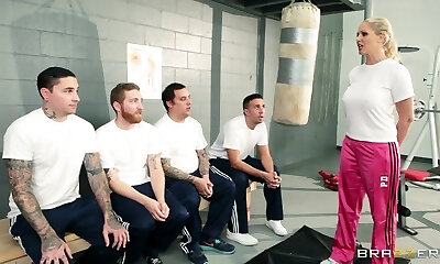 Insatiable sexy white women in the gym sharing two men