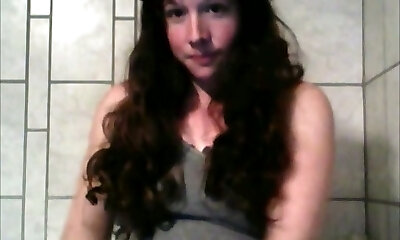 Long haired black head with gross saggy pale tits was jacking on webcam