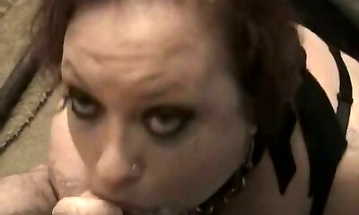 Ugly pale nerd in glasses Amy kneels down to suck a juicy cock for gooey spunk