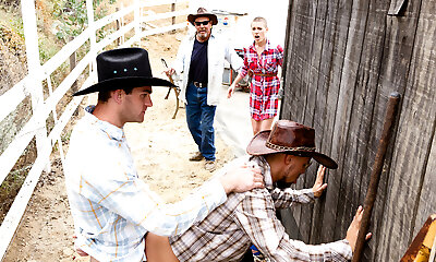 Horny bisexual guys take turns banging each other and blonde Lucy Crimson