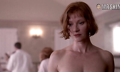 Smirking and sexy Gretchen Mol has juicy big tits and hard nipples