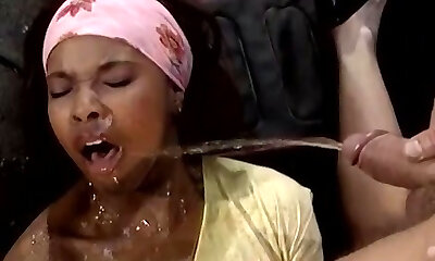 Blonde whore drinks piss
