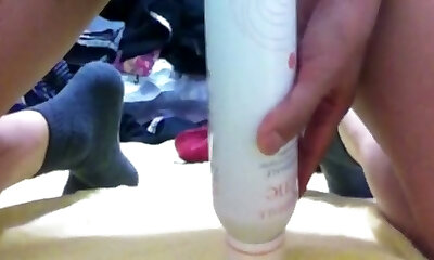 Big bottle up the bitchy wet shaven cunt