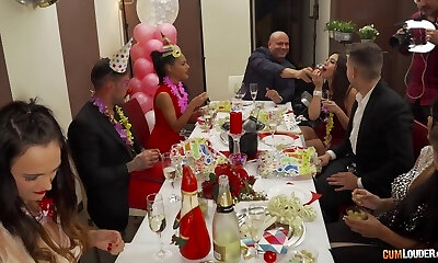 Good-looking nymphs want to turn this birthday party into a real orgy