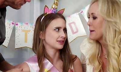 Fortunate stepson is having the best birthday party with his stepmom and her slutty friends