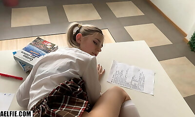 Sexy Blonde Tutor Entices Her Student Into Fucking Her During Their Private Classes (Solo Role Have Fun)