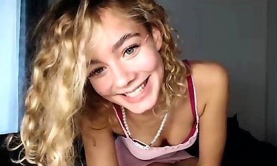 Curly Platinum-blonde Teen Records Solo Dildo Masturbation More at